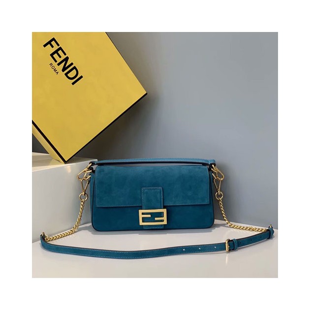펜디 미듐 스웨이드 바게트백 8BR600 청록색 > Fendi