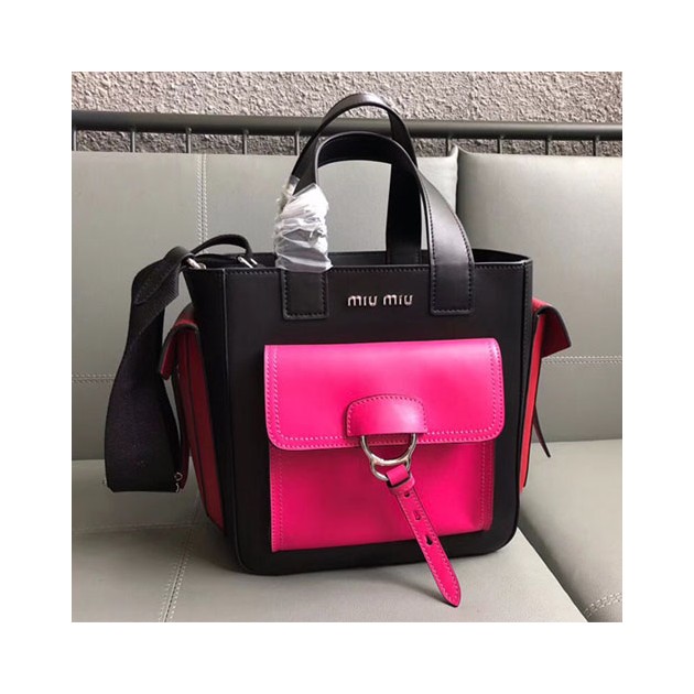 • 미우미우 18S/S 가죽 포켓 토트백 5BA070 블랙&핑크