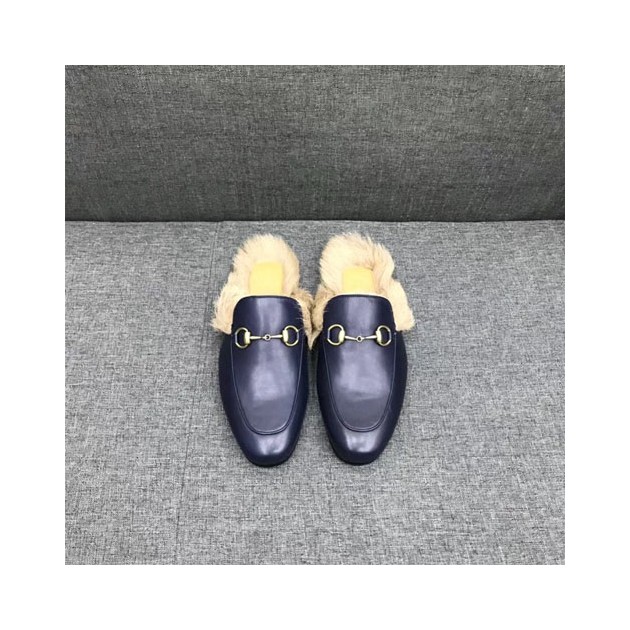 구찌 남성용 프린스타운 가죽 슬리퍼 397647 네이비 > Gucci