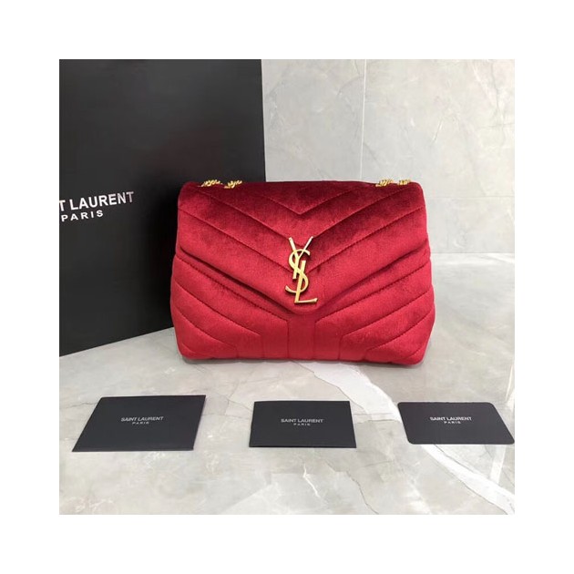 • 입생로랑 Y 퀼티드  벨벳 스몰 루루 체인백 494699 레드