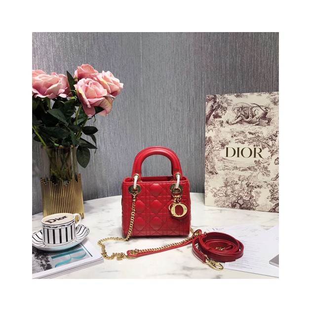 디올 레이디백 미니 M0505 레드 금장 > Dior