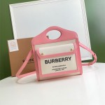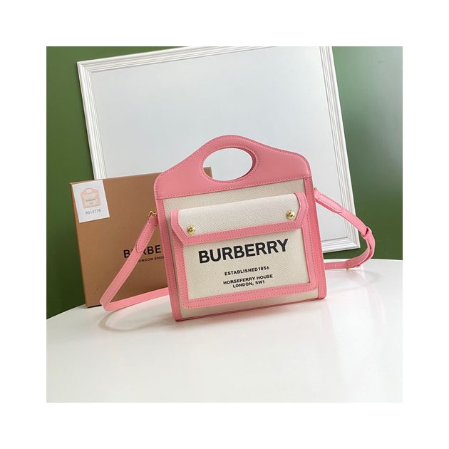 버버리 미니 투톤 캔버스 레더 포켓 백 80317461 핑크 > Burberry