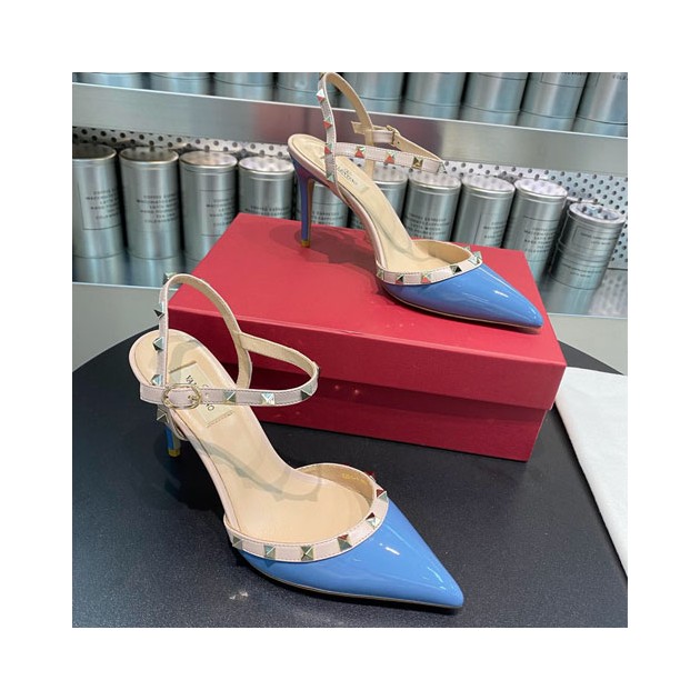 발렌티노 페이턴트 가죽 락스터드 슬링백 펌프스 2S0S98 블루 요약정보 및 구매