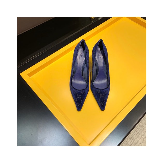 구찌 신상 미드힐 펌프스 ‎602498 벨벳 블루 > Gucci