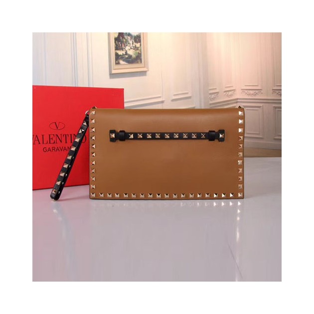 발렌티노 락스터드 미듐 클러치백 PW0B0399 브라운&블랙 > Valentino