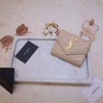 • 입생로랑 모노그램 컴팩트 3단 지갑 403943 캐비어 베이지
