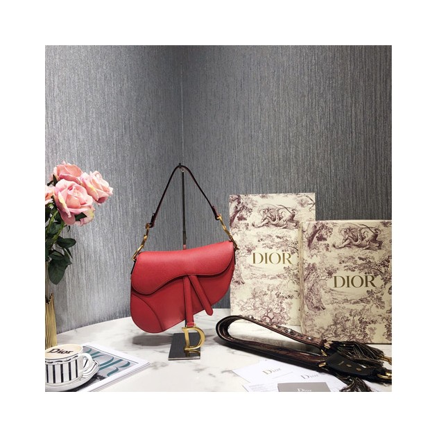 디올 그레인 송아지 가죽 새들백 M0446 레드 > Dior