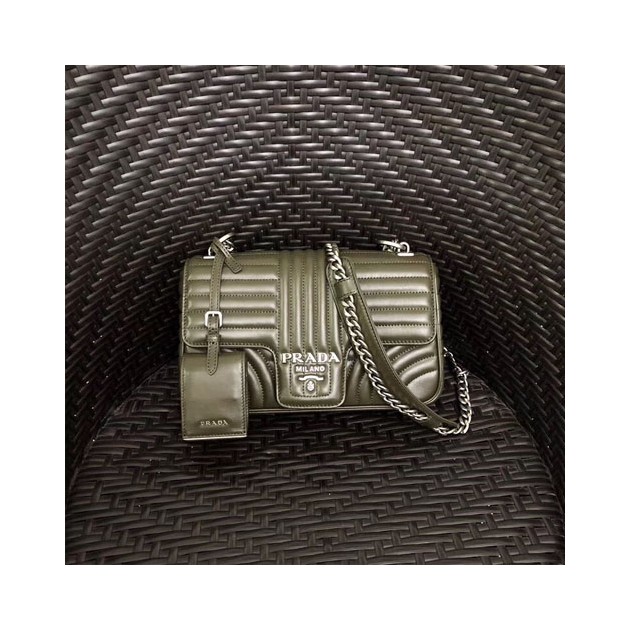 프라다 다이어그램 가죽 미듐 숄더백 1BD108 카키색 은장 > Prada
