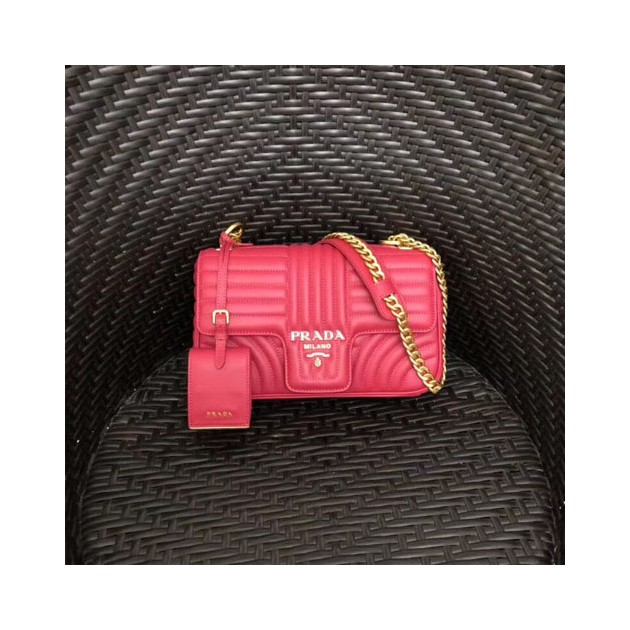 프라다 다이어그램 가죽 미듐 숄더백 1BD108 체리핑크 금장 > Prada