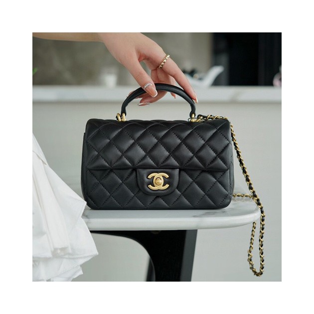 •  샤넬 클래식 뉴미니 탑핸들 플랩백 AS2431 램스킨 블랙