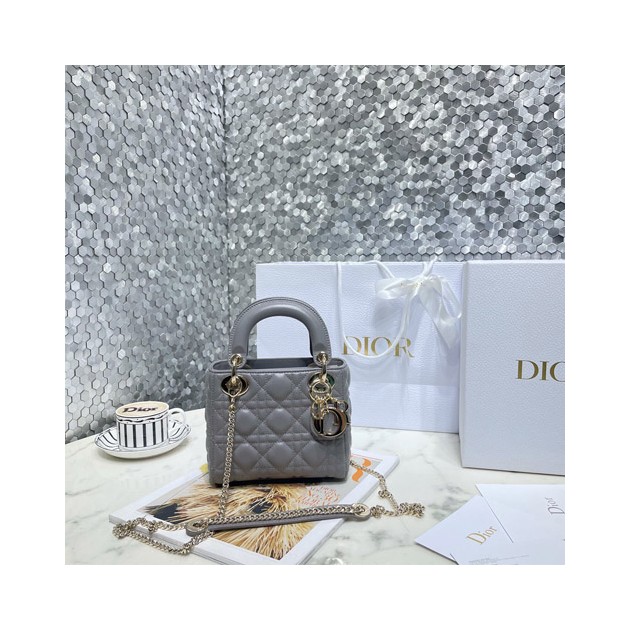 디올 레이디백 미니 M0505 그레이 금장 > Dior