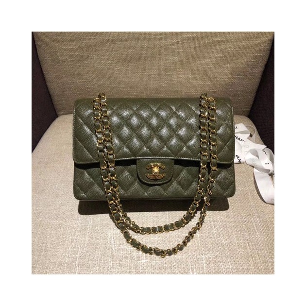• 샤넬 클래식 점보백 A1112 미듐 캐비어 그린 금장