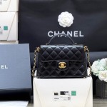 샤넬 25P 탑핸들 플랩백 AS5355 램스킨 블랙 > Chanel