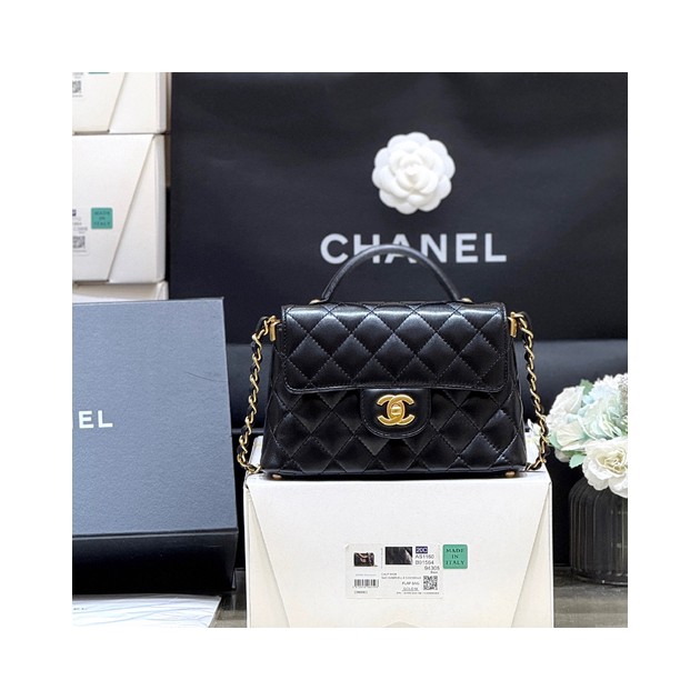 • 샤넬 25P 탑핸들 플랩백 AS5355 램스킨 블랙