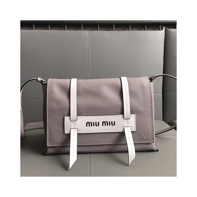 미우미우 신상 가죽 로고 숄더백 5BD073 그레이 > MIU MIU