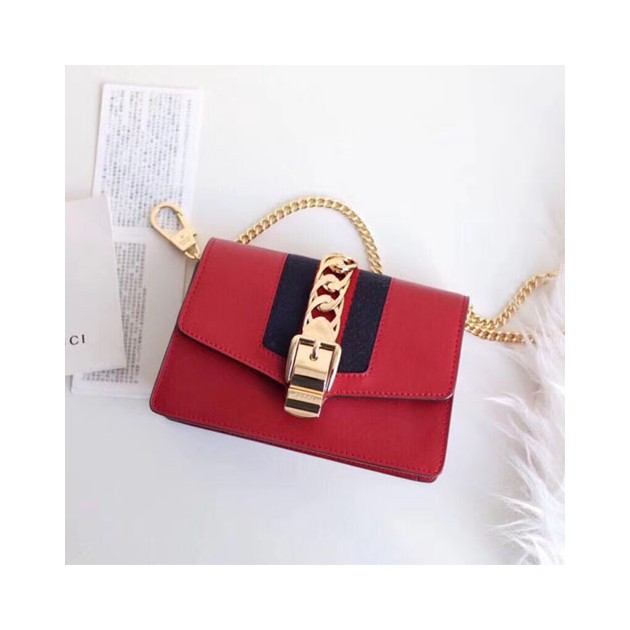• 구찌 실비 미니 가죽 체인백 494646 레드