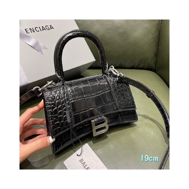 발렌시아가 아워글래스 탑 핸들 백 XS 592833 악어무늬 블랙 은장 > Balenciaga