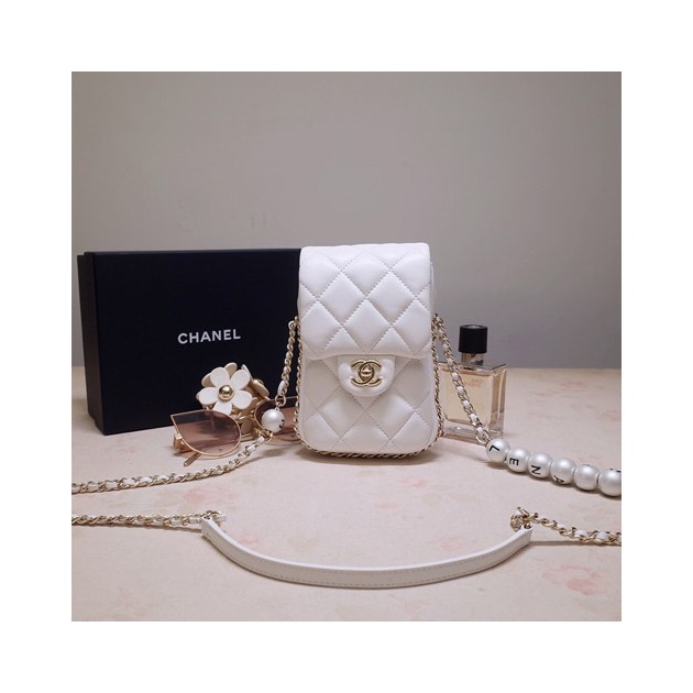 • 샤넬 펄 체인백 폰 홀더 AS1624 화이트
