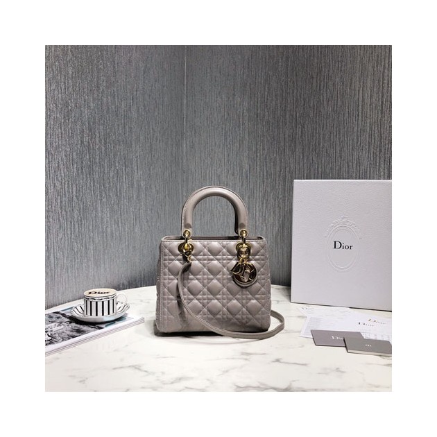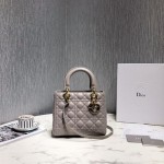 디올 레이디백 미듐 M0535 그레이 금장 > Dior
