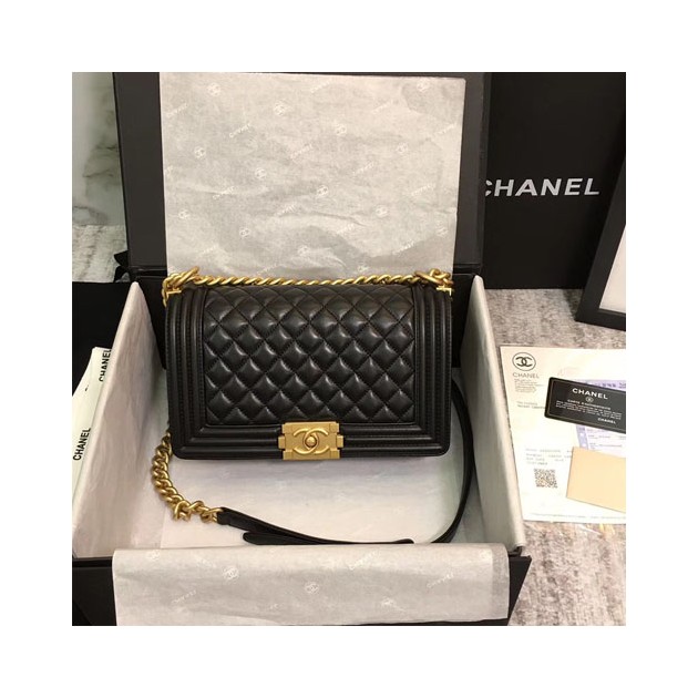샤넬 미듐 보이백 A67086 램스킨 블랙 금장 > Chanel