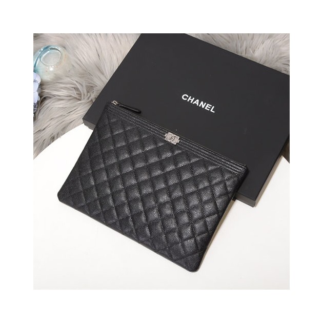 샤넬 캐비어 미듐 보이 클러치백 A31530 블랙 은장 > Chanel