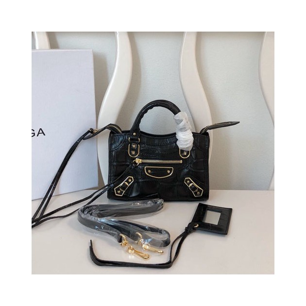 • 발렌시아가 클래식  나노 시티백 291A60 악어무늬 블랙 금장