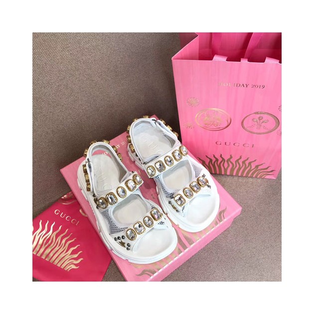 구찌 여성 메시 가죽 샌들 557471 화이트 > Gucci