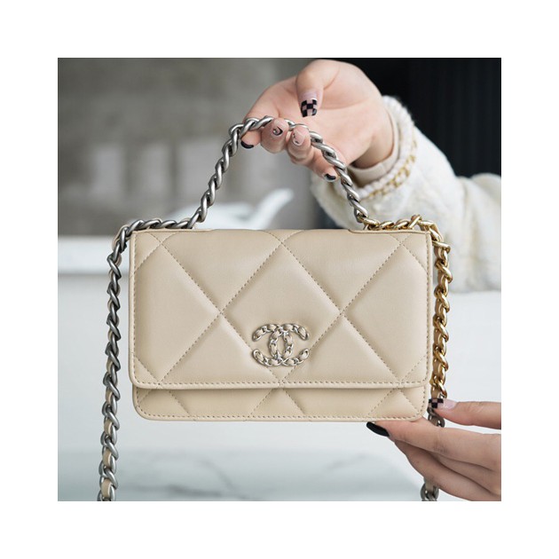 •  샤넬 19 빅 퀼팅 CC WOC 체인백 AP0957 베이지