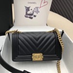 샤넬 보이 미듐 플랩백 A67086 캐비어 블랙 금장 > Chanel