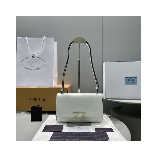 프라다 엠블럼 브러시드 가죽 숄더 백 1BD321 화이트 > Prada