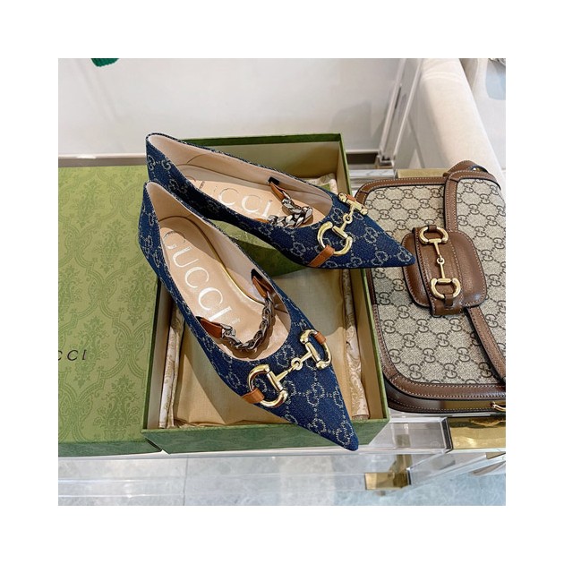 구찌 여성 홀스빗 플랫 슈즈 621161 캔버스 네이비 > Gucci