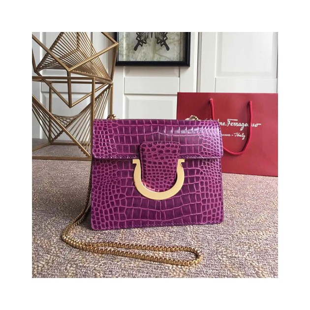 • 페레가모  탈리아 체인백 21F893 악어무늬 보라