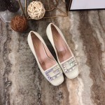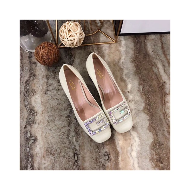 구찌 크리스털 G 장식의 가죽 미드힐 펌프스 522697 화이트 > Gucci