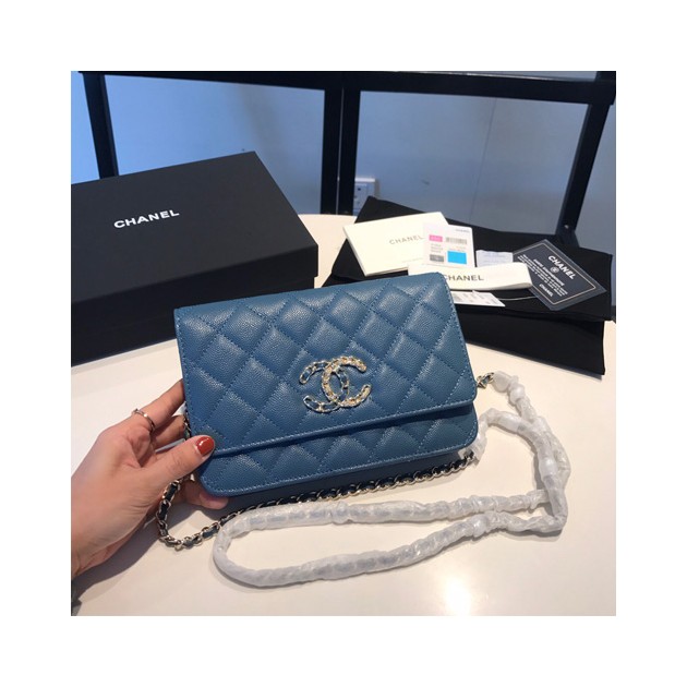 샤넬 WOC 체인 플랩백 AP1794 캐비어 블루 > Chanel
