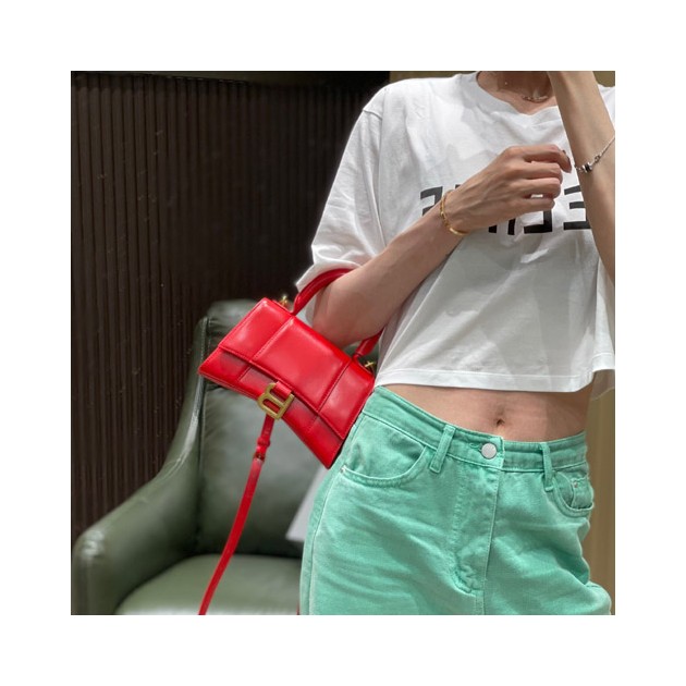 • 발렌시아가 아워글래스 탑 핸들 백 XS 592833 레드