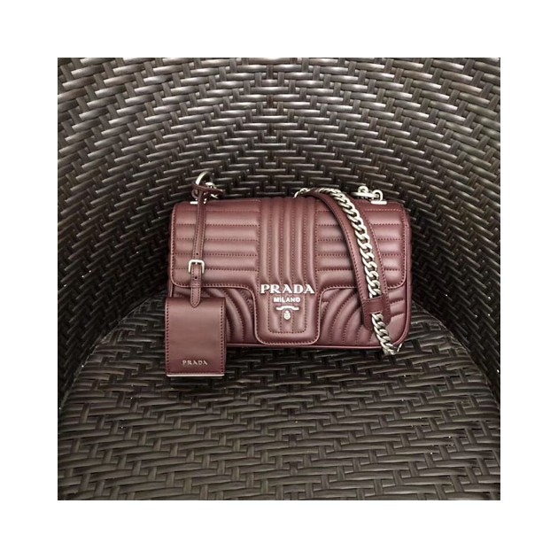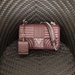프라다 다이어그램 가죽 미듐 숄더백 1BD108 버건디 은장 > Prada
