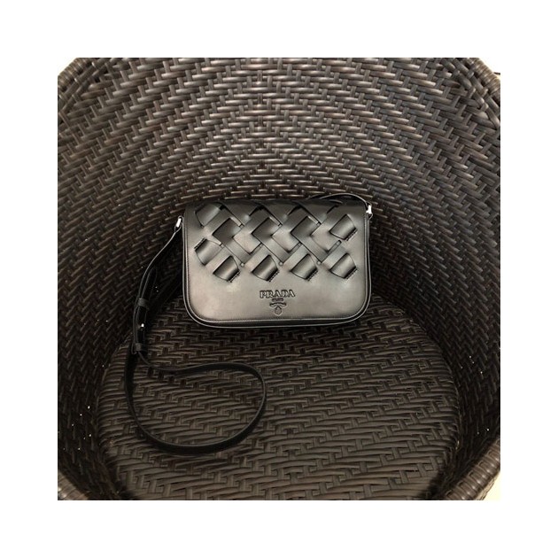 프라다 비텔로 라지 우븐 숄더백 1BD246 블랙 > Prada