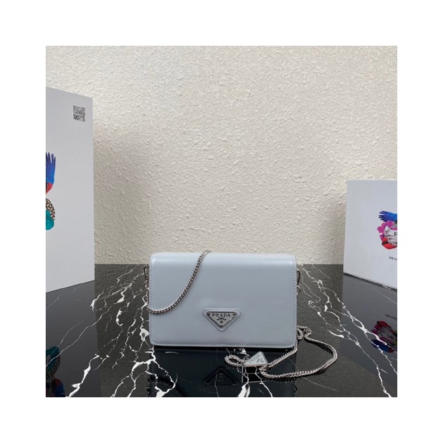 • 프라다 브러시드 가죽 체인 숄더백 1BD307 그레이
