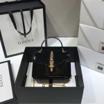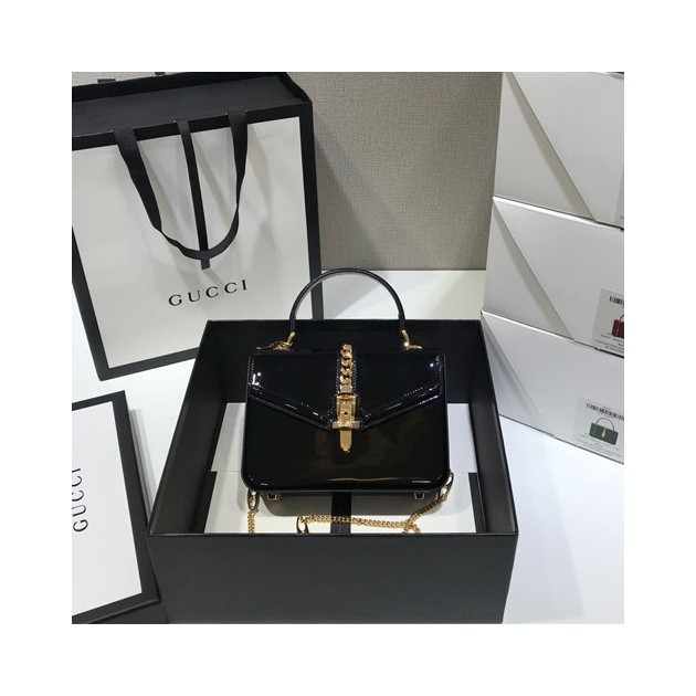 • 구찌 1969 실비 레더 미니 탑 핸들백 589479 에나멜 블랙