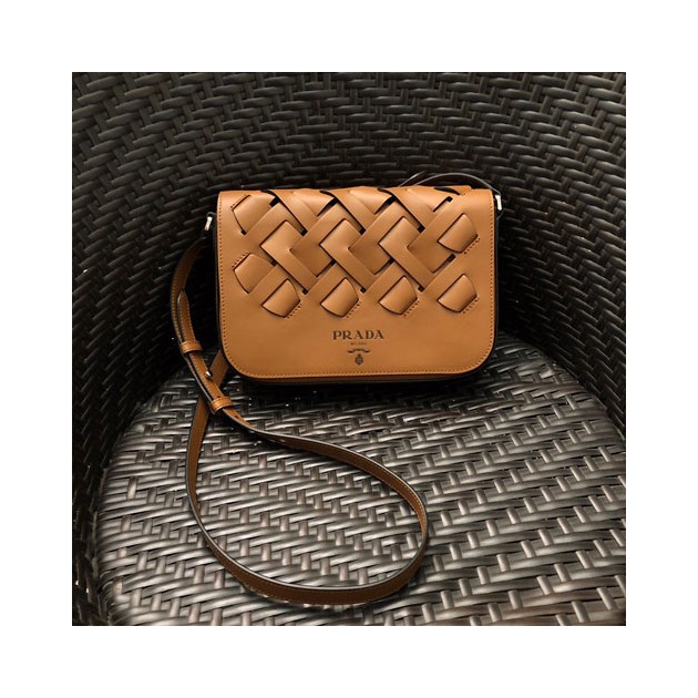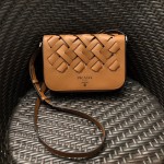 프라다 비텔로 라지 우븐 숄더백 1BD246 브라운 > Prada