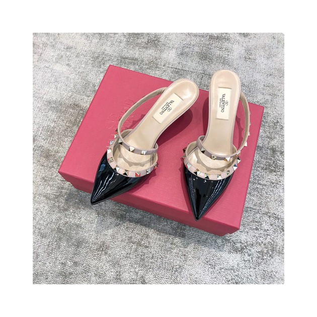 • 발렌티노 페이턴트 가죽 락스터드 샌들 2S0S00 에나멜 블랙