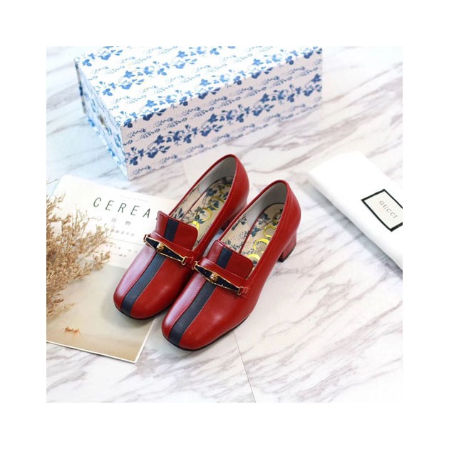 구찌 신상 가죽 미드힐 펌프스 444036 레드 > Gucci