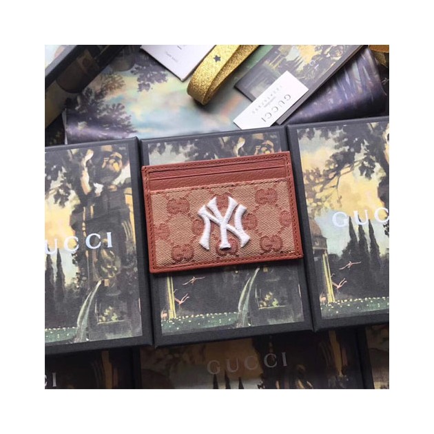 구찌 카드 홀더 뉴욕 양키스 패치가 장식된 슬림 카드 케이스 ‎547793 브라운 > Gucci