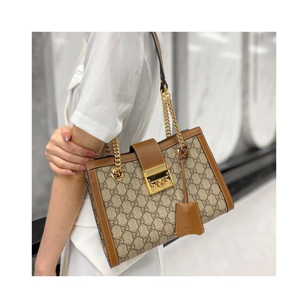 • 구찌 GG수프림 패드락 스몰 숄더백 498156 브라운