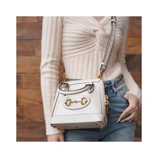 구찌 1955 홀스빗 미니 탑 핸들백 640716 가죽 화이트 > Gucci