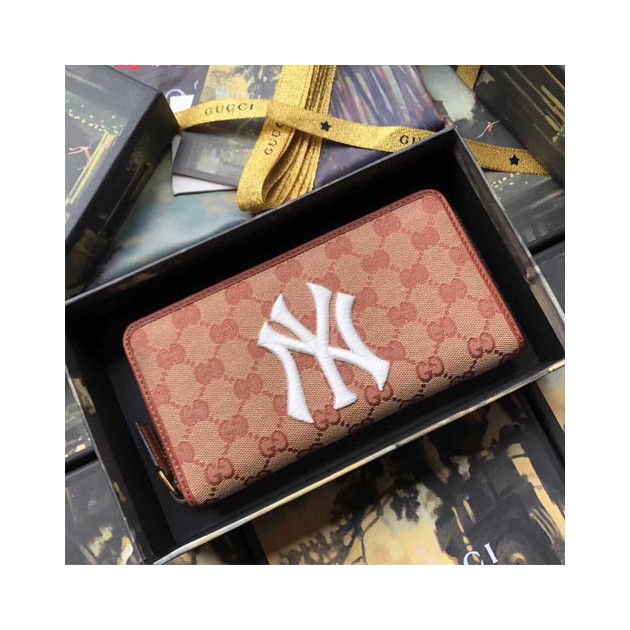 구찌 뉴욕 양키스™ 패치가 장식된 지퍼 달린 지갑 547791 브라운 > Gucci