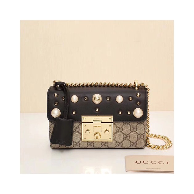 • 구찌 패드락 진주 스터드 숄더백 432182 블랙