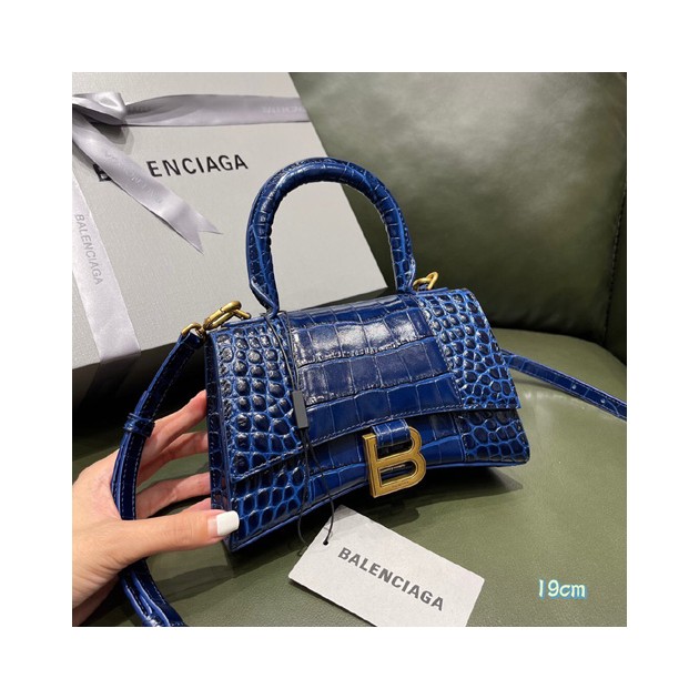 발렌시아가 아워글래스 탑 핸들 백 XS 592833 악어무늬 블루 금장 > Balenciaga